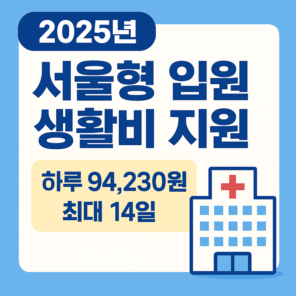 서울시가 운영하는 ‘서울형 입원 생활비 지원’ 제도가 2025년 확대 시행됩니다. 이번 포스팅에서는 지원대상, 조건, 금액, 신청방법까지 한눈에 정리해드릴게요😆